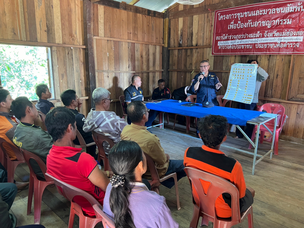 เมื่อวันที่ 10 ตุลาคม 2566 เวลา 09.00 น. กต.ตร.สภ.ปางมะผ้า โดย ร.ต.ท.สุภาพ สุภากุล รอง สวป.สภ.ปางมะผ้า พร้อมชุด ชมส.สภ.ปางมะผ้า ออกปฏิบัติงานตามโครงการชุมชนและมวลชนสัมพันธ์เพื่อป้องกันอาชญากรรม และ ออกเยี่ยมเยียนพร้อมออกรณรงค์ประชาสัมพันธ์ให้ประชาชน และบรรยายให้ความรู้ด้านยาสเพติด , ด้านการป้องกันอาชญากรรมทางเทคโนโลยี , ด้านจราจร , และประชาสัมพันธ์ให้ผู้นำชุมชนและประชาชนแจ้งเบาะแสอาชญากรรมต่างๆ ในหมู่บ้านและชุมชน ทาง ว.13 191 และ เบอร์โทรของ สภ.ปางมะผ้า 063-617171–2 พร้อมทั้งประชาสัมพันธ์ให้ประชาชน เปิดไฟสวมใส่หมวกกันน๊อคตาม “ โครงการประชาร่วมใจขับขี่ปลอดภัยสวมหมวกนิรภัย 100 เปอร์เซ็นต์ “ ประจำปี พ.ศ.2567 ณ บ้านไม้ลัน หมู่ที่ 7 ตำบลปางมะผ้า อำเภอปางมะผ้า ฯ ผู้นำหมู่บ้าน/ชุมชุมและประชาชน ให้ความสนใจและร่วมมือกับทาง จนท.ตร.สภ.ปางมะผ้า เป็นอย่างดี