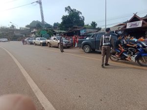 ร.ต.ต.สมบัติ อินทสิทธิ์ รอง สว.(ป.)สภ.ปางมะผ้า หัวหน้างาน พร้อมด้วยลูกชุดสายตรวจ จราจร
