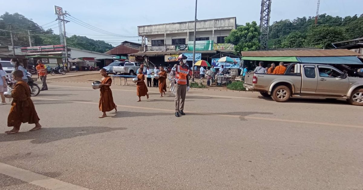 ว.4 อำนวยความสะดวกด้านการจราจรผู้มาร่วมทำบุญตักบาตรบริเวณหน้าตลาดสบป่อง
