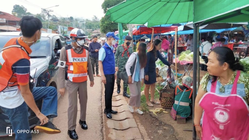 งานจราจร สภ.ปางมะผ้า รับผิดชอบ ว.4 จัดระเบียบการจราจรการจอดรถของผู้มาจับจ่ายซื้อของที่ตลาดช่วงเช้าร่วมกับสาธารณสุขฝ่ายปกครองและทหาร