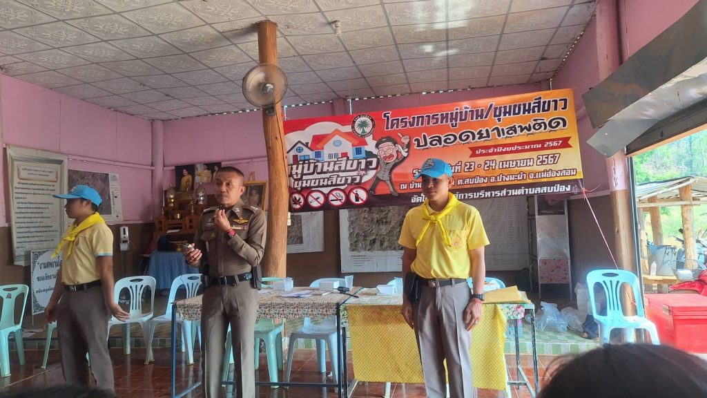 บรรยายให้ความรู้ ร่วมกับ องค์การบริหารส่วนตำบลสบป่อง ในโครงการหมู่บ้านชุมชนาขาว ปลอดยาเสพติด ในพื้นที่ บ้านหนองผาจ้ำ ต.สบป่อง อ.ปางมะผ้า จว.แม่ฮ่องสอน