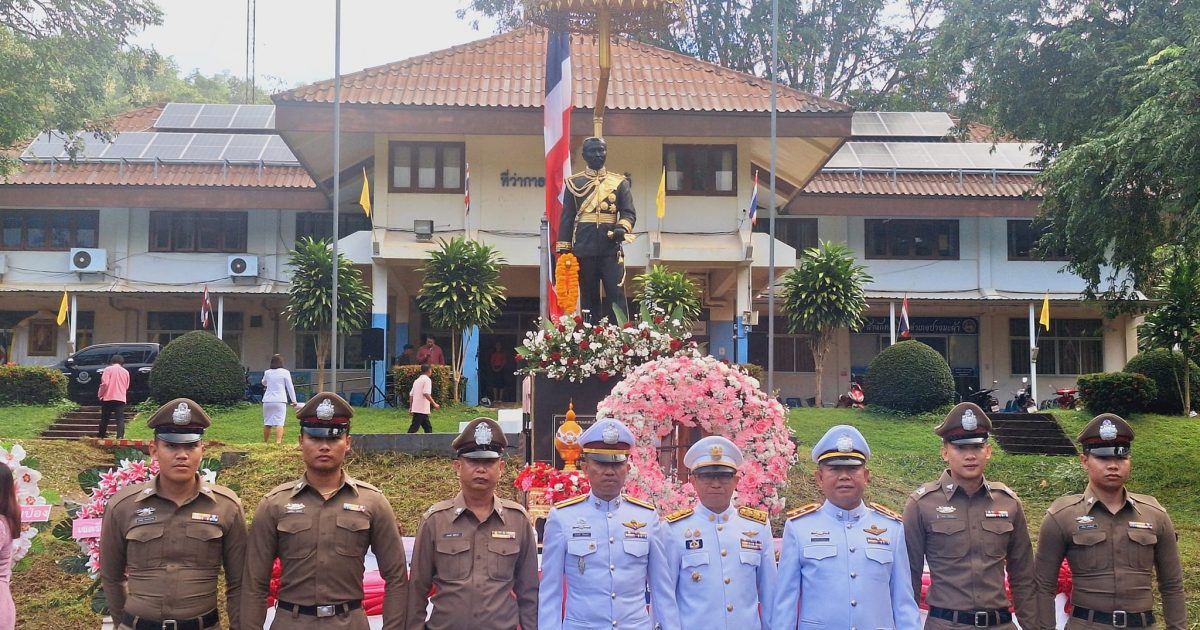 พิธีวางพวงมาลา 23 ตุลาคม “วันปิยะมหาราช” 23 ตุลาคม 2567 โดย admin / ข่าวกิจกรรม,ข่าวภารกิจผู้บังคับบัญชา,ข่าวกิจกรรม,งานจราจร,ข่าวกิจกรรม,งานป้องกันปราบปราม,ข่าวกิจกรรม,งานสอบสวน,ข่าวกิจกรรม,งานสืบสวน,ข่าวกิจกรรม,งานอำนวยการ วันนี้ 23 ต.ค. 2567 เวลา 06:30 น.โดยการอำนวยการของพ.ต.อ.สมบัติ แสงสว่าง ผกก.สภ.ปางมะผ้า, พ.ต.ท.กัมปนาท รักษนาเวศ รอง ผกก.ป.สภ.ปางมะผ้ามอบหมายให้พ.ต.ต.ชานนท์ เขื่อนเเก้ว สว.สส.สภ.ปางมะผ้านำข้าราชการตำรวจในสังกัด ร่วมพิธีวางพวงมาลา 23 ตุลาคม “วันปิยะมหาราช”วันคล้ายวันสวรรคต พระบาทสมเด็จพระจุลจอมเกล้าเจ้าอยู่หัว รัชกาลที่ 5 เพื่อน้อมรำลึกในพระมหากรุณาธิคุณอันหาที่สุดมิได้———————————————–ณ พระบรมราชานุสาวรีย์ พระบาทสมเด็จพระจุลจอมเกล้าเจ้าอยู่หัวฯ รัชกาลที่ ๕ หน้าลานที่ว่าการอำเภอปางมะผ้า ต.สบป่อง อ.ปางมะผ้า จว.แม่ฮ่องสอน FacebookFacebookXXLINELine