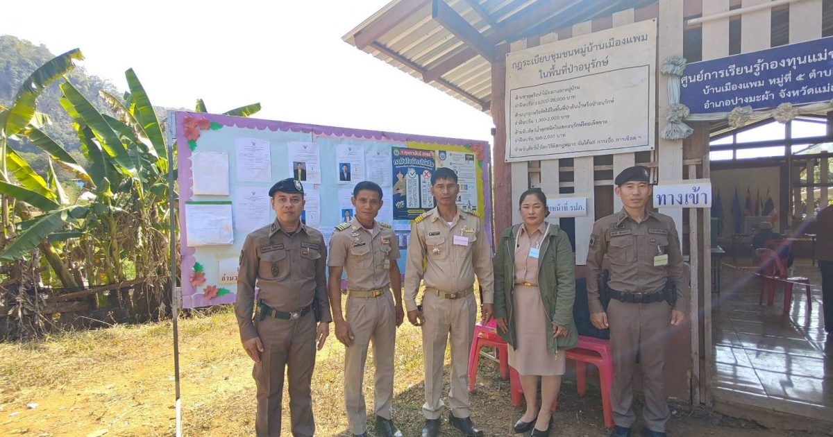 พ.ต.ท.กัมปนาท รักษนาเวศ รอง ผกก.ป.สภ.ปางมะผ้า ตรวจเยี่ยมที่เลือกตั้งสำหรับหน่วยเลือกตั้งที่ 12 เขตที่ 2 ศาลาเอนกประสงค์บ้านเมืองแพม อ.ปางมะผ้า จ.แม่ฮ่องสอน