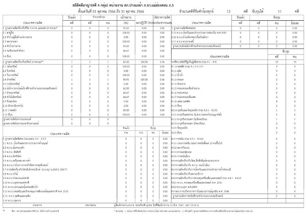 สถิติคดีอาญา 4 กลุ่ม ตุลาคม 2566 14 มีนาคม 2567 โดย admin / ไม่มีหมวดหมู่ Download ไฟล์ PDF คลิ้กที่นี่ Download ไฟล์ Excel คลิ้กที่นี่ FacebookFacebookXXLINELine