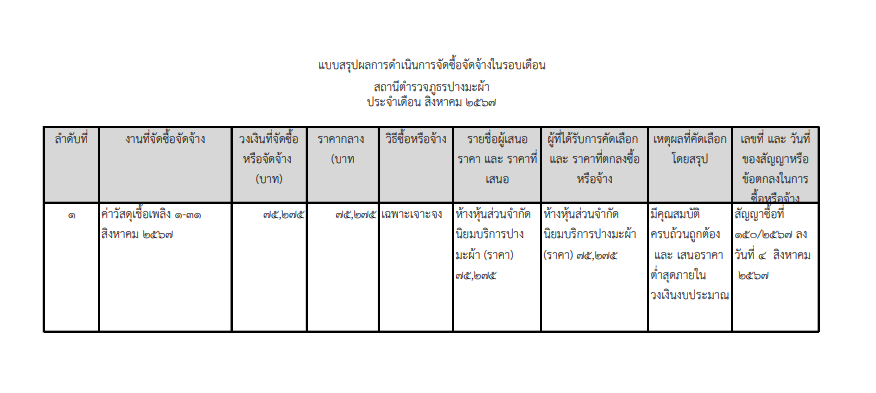สรุปผลการจัดซื้อจัดจ้างประจำเดือน สิงหาคม 2567 26 สิงหาคม 2567 โดย admin / ไม่มีหมวดหมู่ Download PDF Download Excel FacebookFacebookXXLINELine