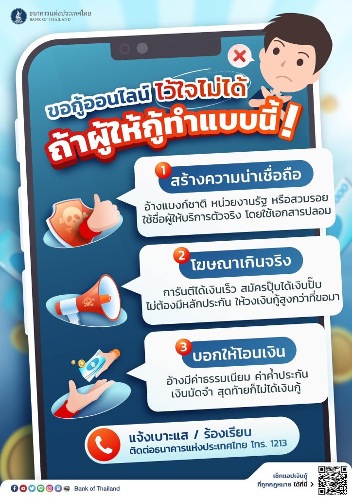 – อินโฟกราฟิก เตือนภัย “ขอกู้ออนไลน์ ไว้ใจไม่ได้ ถ้าผู้ให้กู้ทำแบบนี้”