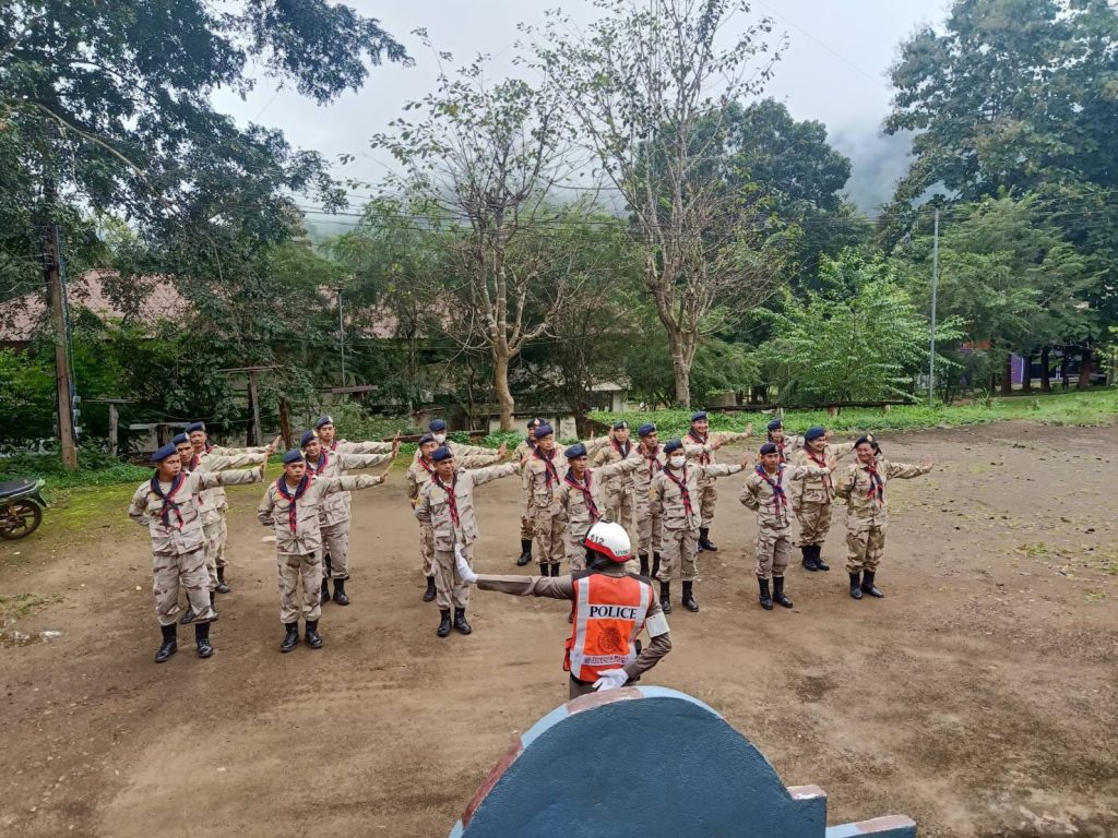 จนท.ตร.งาน จร.สภ.ปางมะผ้า เป็นวิทยากรให้ความรู้ด้านการจราจรแก่เจ้าหน้าที่ อส. อำเภอปางมะผ้า