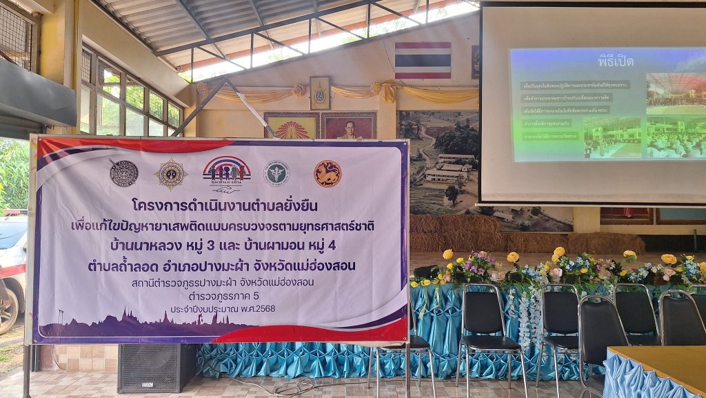 ดำเนินการเปิดโครงการตำบลยั่งยืน เพื่อแก้ไขปัญหายาเสพติด แบบครบวงจรตามยุทธศาสตร์ชาติ ปีงบประมาณ 2568 ณ หอประชุมโรงเรียนบ้านวนาหลวง ต.ถ้ำลอด อ.ปางมะผ้า จว.แม่ฮ่องสอน