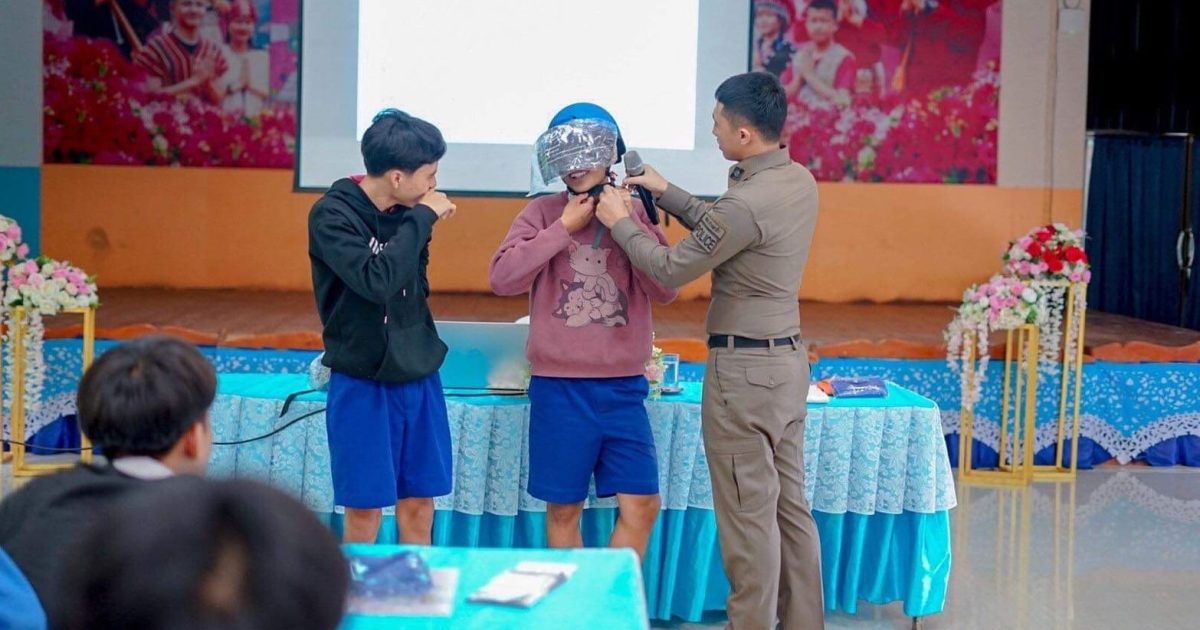 ส.ต.อ.ไกรวิชย์ อัครวิบูลย์ชัย จนท.ตร.งาน จร.สภ.ปางมะผ้า เป็นวิทยากรบรรยายให้ความรู้แก่นักเรียนโรงเรียนอนุบาลปางมะผ้าร่วมกับ สนง.ปภ.จว.แม่ฮ่องสอน ตามโครงการ การขับขี่ให้ปลอดภัยและสวมหมวกกันน็อก100% ในหัวข้อความรู้เบื้องต้นเกี่ยวกับวินัยจราจร พร้อมทั้งสาธิตการสวมใส่หมวกกันน็อกให้แก่นักเรียน
