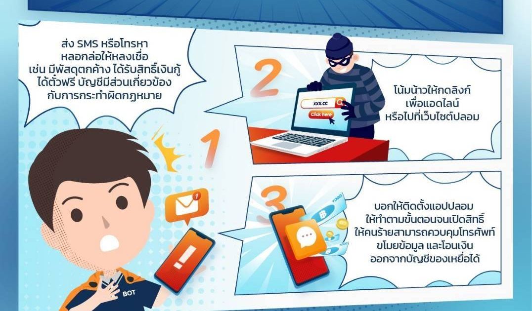 - ไม่ดาวน์โหลดแอพพลิเคชันจากลิงค์ใดๆ ควรโหลดจาก App Store และ Google Play Store โดยตรง