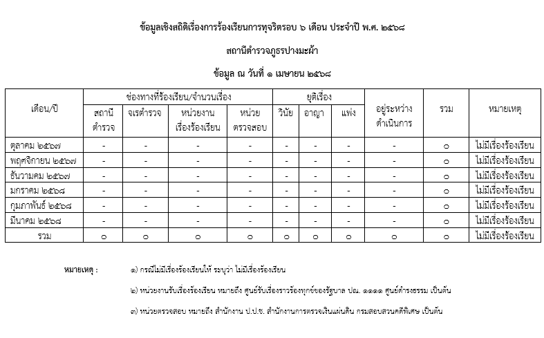 สรุปข้อมูลเชิงสถิติเรื่องการร้องเรียนการทุจริตรอบ 6 เดือน
